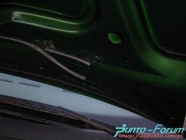 Jeśli mimo pełnego zbiorniczka i wyraźnie słyszalnej pracy pompy spryskiwacze nie zraszają szyb należy przypuszczać, że przyszła pora na wymianę zaworów zwrotnych układu spryskiwaczy. By się temu upewnić warto spojżeć pod maskę, gdzie przez nieszczelne zawory zwrotne wycieka płyn, który powinien trafić na szyby naszego auta. Do całej operacji jedynymi niezbędnymi rzeczami są owe zawory. W Punto występują one w ilości trzech. Dwa zlokalizowane są pod maską auta zgodnie z tym co pokazuje poniższe zdjęcie, a trzeci odpowiedzialny za tylną szybę jest umieszczony w klapie bagażnika pod osłoną zamontowaną na zatrzaski.