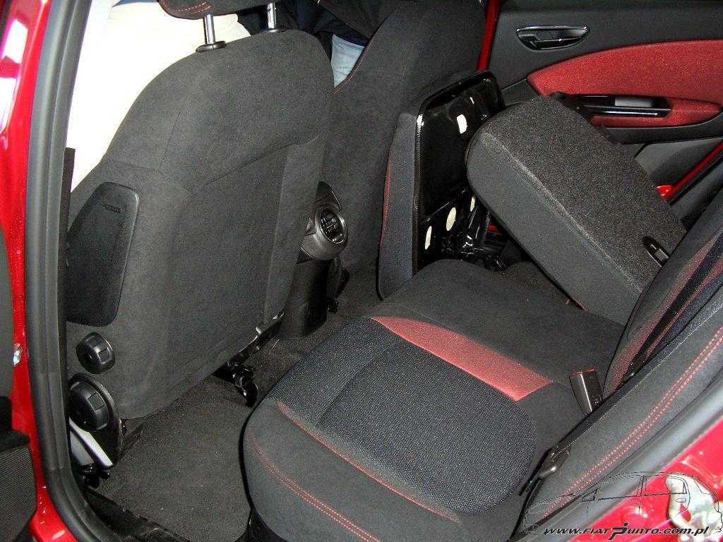 Materiały wykończeniowe prezentowanej wersji Dynamic jakością nie ustępują użytym w Golfie czy Civicu, a przewyższają te z Megane albo Cee’d. Nie zauważyłem żadnych niedoróbek wykończenia. Deska rozdzielcza przywodzi na myśl samochody wyścigowe i... Alfę Romeo.  Tę ostatnią za sprawą wystroju zegarów. Przednia część kokpitu wykonana jest ze szczególnie miłego w dotyku tworzywa. W stosunku do Grande delikatniej wyprofilowana jest kierownica. Plus za konsolę zwróconą lekko w stronę kierowcy. Siedzenia Dynamic zostały obszyte czarnym materiałem z częściowym, ostatnio bardzo modnym zabarwieniem na czerwono. Do wykończenia foteli, jak również kierownicy, gałki zmiany biegów oraz hamulca ręcznego użyto czerwonej nici, która podkreśla sportowy charakter wnętrza Bravo. Lampka oświetlenia wnętrza „wyjęta” z Alfy 147.