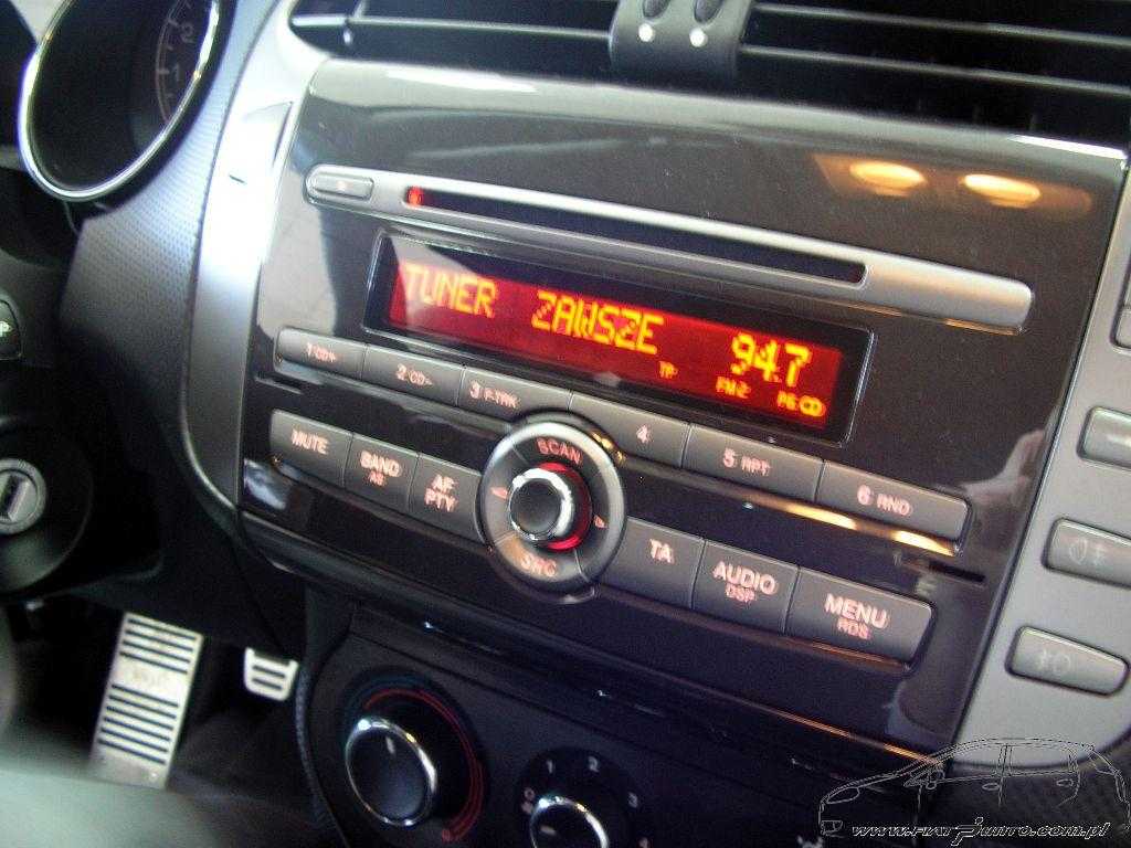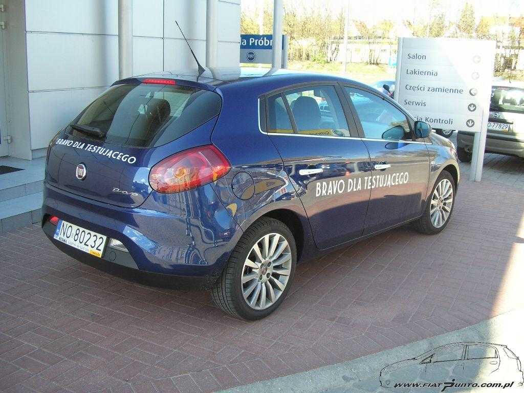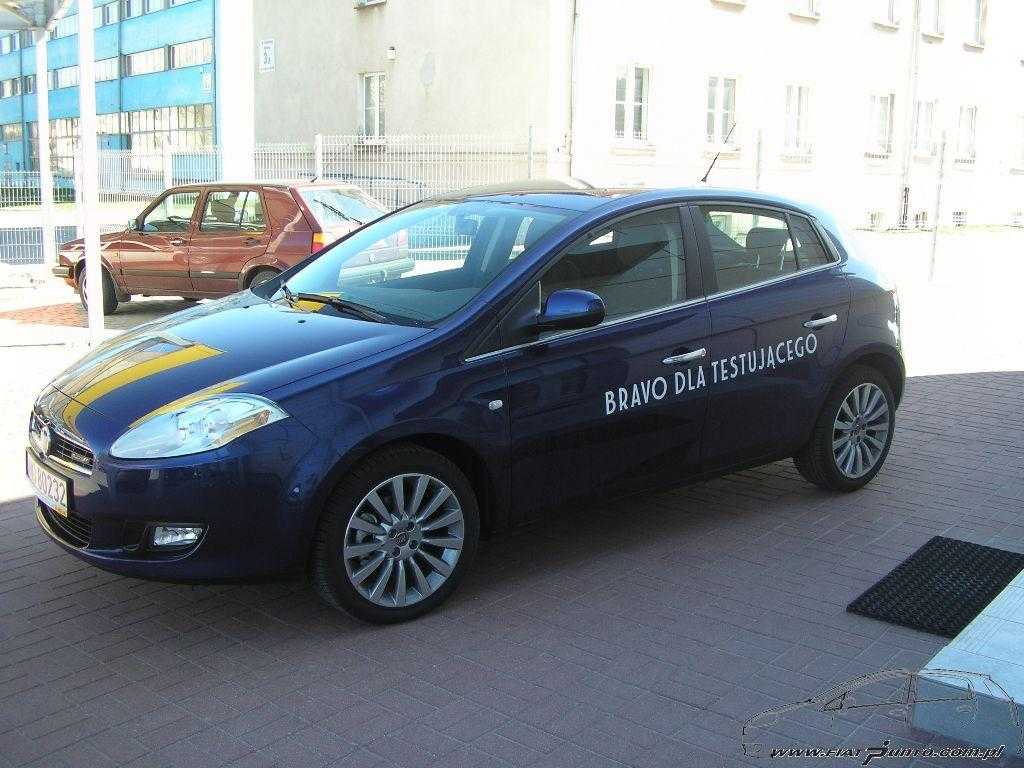 Niestety ogromna ilość chętnych na przejażdżkę Bravo spowodowała, że trzeba było czekać w kolejce, a sama jazda odbywała się na zasadzie krótkiej rundy najbliższymi ulicami wokół salonu. Do testów przygotowano Bravo z wysokoprężnym silnikiem 1.9 MultiJet w słabszej - 120-konnej wersji. Po zajęciu miejsca za kierownicą dostałem do ręki kluczyk, jaki już gdzieś widziałem, a chyba nawet miałem taki w kieszeni... :] Po uruchomieniu silnika spod maski dobiegł klekot jakby oddalony od samochodu. To za sprawą dobrego wyciszenia wnętrza. Trzeba również powiedzieć, że diesel w Bravo nie powoduje wibracji i pracuje w miarę „miękko”. Jeszcze tylko światła i rura!  Tu się zdziwiłem, bo nieco inny - kwadratowy włącznik na lewej dźwigience był zdecydowanie mniej wygodny niż w Grande. Jedziemy. Silnik nie wykazuje przesadnej słabości przy ruszaniu, w przeciwieństwie do tej samej jednostki w Sedici. Kierownica przy włączonym CITY obraca się równie lekko jak w GP. Wrzucam drugi bieg, przyspieszam. Powyżej 2000 obrotów silnik wyraźnie ożywa i wyrywa do przodu – to mi się podoba!  W tym momencie zapytałem „pana pilota” o obroty, przy których osiągany jest maksymalny moment obrotowy. Odpowiedź: 5500 RPM! Spojrzenie w jego stronę – niemożliwe, przy ilu?  "5500 RPM (chwila ciszy) ...a nie przepraszam, to w benzynowym. Tutaj przy 2500 RPM." Jak się później okazało ani jedno ani drugie nie zgadza się z katalogiem, jednakże można wybaczyć panu, który na co dzień zajmuje się sprzedażą aut użytkowych. Oczywiście do takich pytań każdy powinien być przygotowany, natomiast tego dnia było chyba za szybkie tempo i „pan pilot” sprawiał wrażenie zawieszonego. Mniej więcej tak, jakby znalazł się na środku pustyni w samo południe. Cóż, lato coraz bliżej...  Przestałem więc zawracać głowę trudnymi pytaniami, a jedynie komentowałem co mi się rzuciło w oczy.  Podczas niespełna 10-minutowej jazdy pomykaliśmy szerokimi i prostymi ulicami o równej nawierzchni, z tego powodu nie jestem w stanie nic napisać o zawieszeniu. Plus za dostateczne wyciszenie odgłosów toczących się opon. Nasza jazda należała raczej do dynamicznych, co później zresztą skomentował siedzący z tyłu kolega.  Po wyjechaniu z powrotem na ul. Obrońców Tobruku prowadzącą do salonu mogłem już zdecydowanie przycisnąć. Zjazd na lewy pas i rura. Fotoradar zwrócony prawidłowo, czyli w przeciwną stronę.  Zmiana biegu w granicach maksymalnej mocy, a więc przy około 4000 RPM. Dźwięk diesla przy takich obrotach jest przerażający. Przyspieszone „kle kle kle”, przeradzające się w wycie zaczyna mnie skręcać i zmusza do zmiany biegu.  W dalszym ciągu nie trawię tego dźwięku, choć z pewnością idzie się przyzwyczaić, szczególnie gdy odwiedzi się stację benzynową. Średnie zużycie paliwa na testowym odcinku wyniosło 7,8 l/100 km, czyli nie więcej niż spaliłoby Grande 1.4 8V. Za to z jaką dynamiką! Skrzynia biegów nawet podczas szybkiej zmiany przełożeń charakteryzuje się znakomitą precyzją. Końcówkę trasy jedziemy na 4 biegu już ponad 100 km/h, wyprzedzając kierowców którzy nie dysponują Fiatem Bravo. A więc jak narazie wszystkich...  Następnie zjazd ze skrajnego lewego na skrajny prawy pas, hamowanie, prawy 2 przez bramę aby za chwilę znaleźć się w miejscu, w którym rozpoczęliśmy naszą „długą” podróż. I oto na koniec „pan pilot” zebrał siły, ażeby zapytać mnie o wrażenia z jazdy!  Po przejażdżce wypełniliśmy z kumplem kupony konkursowe, gdzie długo zastanawiałem się co napisać w polu „wrażenia”. Na podstawie tego pola Fiat wylosuje w czerwcu szczęśliwca, który otrzyma Bravo na własność w zamian za prawa autorskie do swojego twórczego tekstu, mającego być następnie wykorzystanym w reklamie auta. Niestety w obydwu kuponach widniała tablica rejestracyjna BRAVO 01, co według wywieszonego plakatu oznaczało, że nie dostaniemy samochodu na weekend. A szkoda...  Przy najbliższej okazji będę chciał odrobinę dłużej pojeździć Bravo.