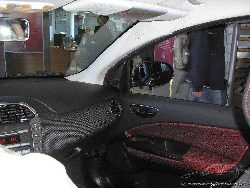 Materiały wykończeniowe prezentowanej wersji Dynamic jakością nie ustępują użytym w Golfie czy Civicu, a przewyższają te z Megane albo Cee’d. Nie zauważyłem żadnych niedoróbek wykończenia. Deska rozdzielcza przywodzi na myśl samochody wyścigowe i... Alfę Romeo.  Tę ostatnią za sprawą wystroju zegarów. Przednia część kokpitu wykonana jest ze szczególnie miłego w dotyku tworzywa. W stosunku do Grande delikatniej wyprofilowana jest kierownica. Plus za konsolę zwróconą lekko w stronę kierowcy. Siedzenia Dynamic zostały obszyte czarnym materiałem z częściowym, ostatnio bardzo modnym zabarwieniem na czerwono. Do wykończenia foteli, jak również kierownicy, gałki zmiany biegów oraz hamulca ręcznego użyto czerwonej nici, która podkreśla sportowy charakter wnętrza Bravo. Lampka oświetlenia wnętrza „wyjęta” z Alfy 147.