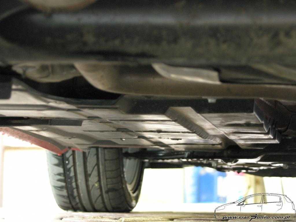 gp Wczoraj wieczorem przyjrzałem się dokładnie. Ta "zabudowa" o której pisałem nie jest na całym podwoziu tak jak mi się wydawało. Zaczyna się mniej więcej pod przednią osią i kończy przed tylną, (czyli po całej długości progów i jeszcze trochę więcej) ale środkowy tunel jest odkryty (tam gdzie przebiega układ wydechowy). Jest to z jakiegoś tworzywa plastycznego. Trochę ciężko jest zrobić takie zdjęcia bez kanału ale mam nadzieję, że coś zobaczysz. Napisz czy tak samo to wygląda u Ciebie?