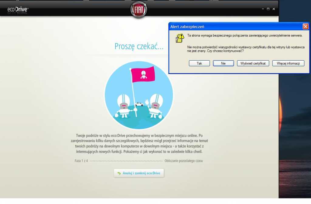 wyłączyłem wszystkie antywirusy i zapory i dalej to samo, sam już nie wiem co robić? Może przeinstalować aplikacje ale to nie wiem czy nie stracę danych które mam już zebrane. Czy wszystkim korzystającym z ecodriva poszła ta aktualizacja i wszystko śmiga OK??Czy też się Wam pojawiał podczas aktualizacji ten komunikat o certyfikacie??