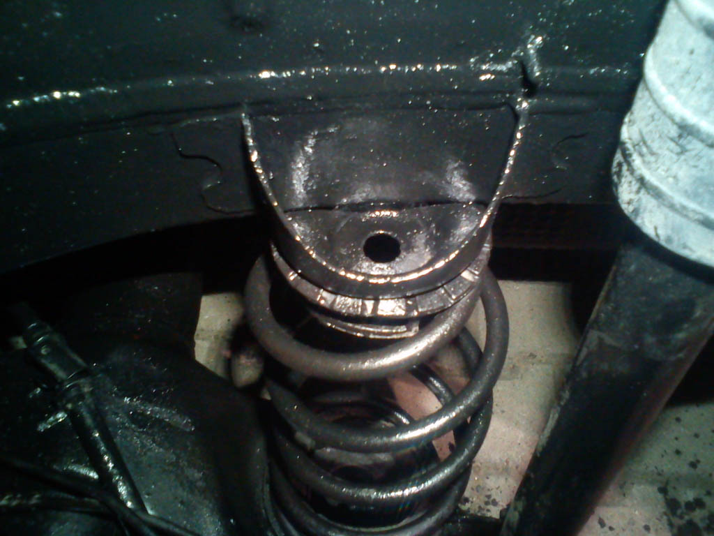 Podparcie górne sprężyny. Przygrzana do budy śmieszna blaszka. Dobrze uszczelnić szczeliny. Same sprężyny też można pomazać. Podobno w Grande lubią korodować (aż do pęknięcia). Załącznik: