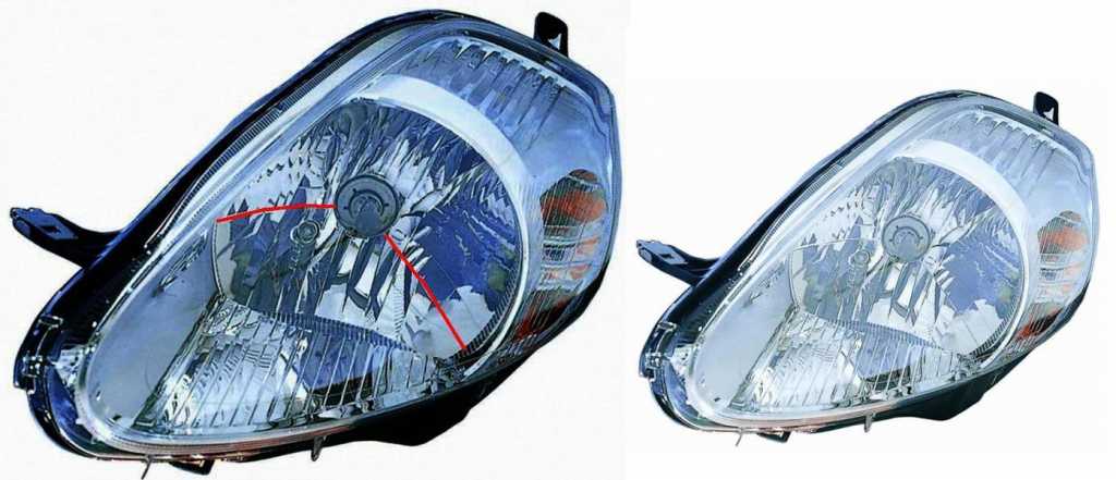 Porównaj kształt lustra. Zwróć uwagę na przebieg zaznaczonych linii.
