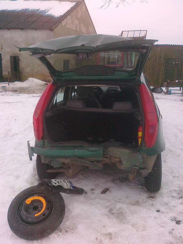 No cóż... nie jest to moje punto, a znajomej. Nie mniej smutny widok ... Na trasie w jej bagażniku zaparkował mercedes 190 D.
