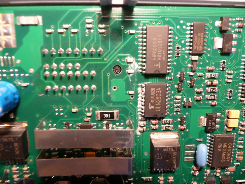 Pozdrawiam Gdzie dokładnie znajduje się ta masa C30? Możesz jakąś fotę wrzucić? Żeby dobrać się do tej masy trzeba unieść poszycie lewej strony bagażnika i lewego boku (tyłu). Jak uniesie się poszycie, widać kabelki idące w krawędzi załamania karoserii, po nich łatwo dojść. A u mnie też problem wrócił  Dzisiaj podłączyłem się z laptopem do BodyKomputera. Oto błędy: ################################################################################ READING ERROR CODES: 1: B1007 - Kierunkowskazy The indicated component managed by the Body Computer shows a defect. Ensure the device operation with an actuator test (if available). Check the wiring between the component and Body Computer for opens, shorts and weak connections, and the component itself. Ensure that the system is configured correctly . Błąd obecnie nie jest aktywny ale został zapisany w pamięci. Skasuj błędy i obserwuj czy nie powrócą. Kontrolka na desce nie została włączona przez ten błąd. 2: B1009 - Sterowanie świateł pozycyjnych (przednich) The indicated component managed by the Body Computer shows a defect. Ensure the device operation with an actuator test (if available). Check the wiring between the component and Body Computer for opens, shorts and weak connections, and the component itself. Ensure that the system is configured correctly . Błąd obecnie nie jest aktywny ale został zapisany w pamięci. Skasuj błędy i obserwuj czy nie powrócą. Kontrolka na desce nie została włączona przez ten błąd. 3: B1008 - Światła stop The indicated component managed by the Body Computer shows a defect. Ensure the device operation with an actuator test (if available). Check the wiring between the component and Body Computer for opens, shorts and weak connections, and the component itself. Ensure that the system is configured correctly . Błąd obecnie nie jest aktywny ale został zapisany w pamięci. Skasuj błędy i obserwuj czy nie powrócą. Kontrolka na desce nie została włączona przez ten błąd. ################################################################################ Ale przez przypadek zauważyłem, że w okolicy klapy zasłaniającej bezpieczniki jest woda  (( Podejrzewam, że po prostu układ pomiarowy w BodyKomputerze zamókł i dlatego sygnalizuje błąd w każdym z przypadków. Postaram się jutro wyjąć BodyKomputer i zajrzeć do środka. No i jednak woda w BodyKomputerze. Ścieżki zaśniedziałe. Załącznik: