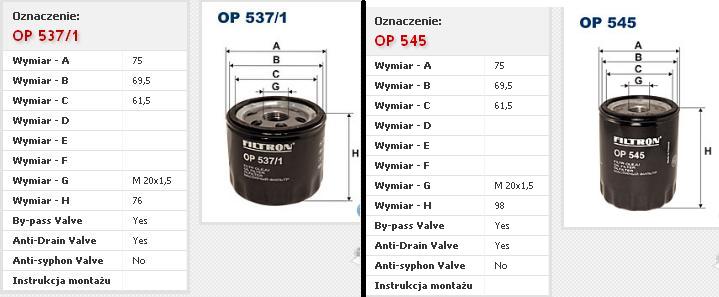 różnica między filtrami oleju OP 537 a OP 545 to tylko i wyłącznie wysokość filtra. wszystko inne jest takie same. ja osobiście zakładam 545 bo taki był jak go kupiłem