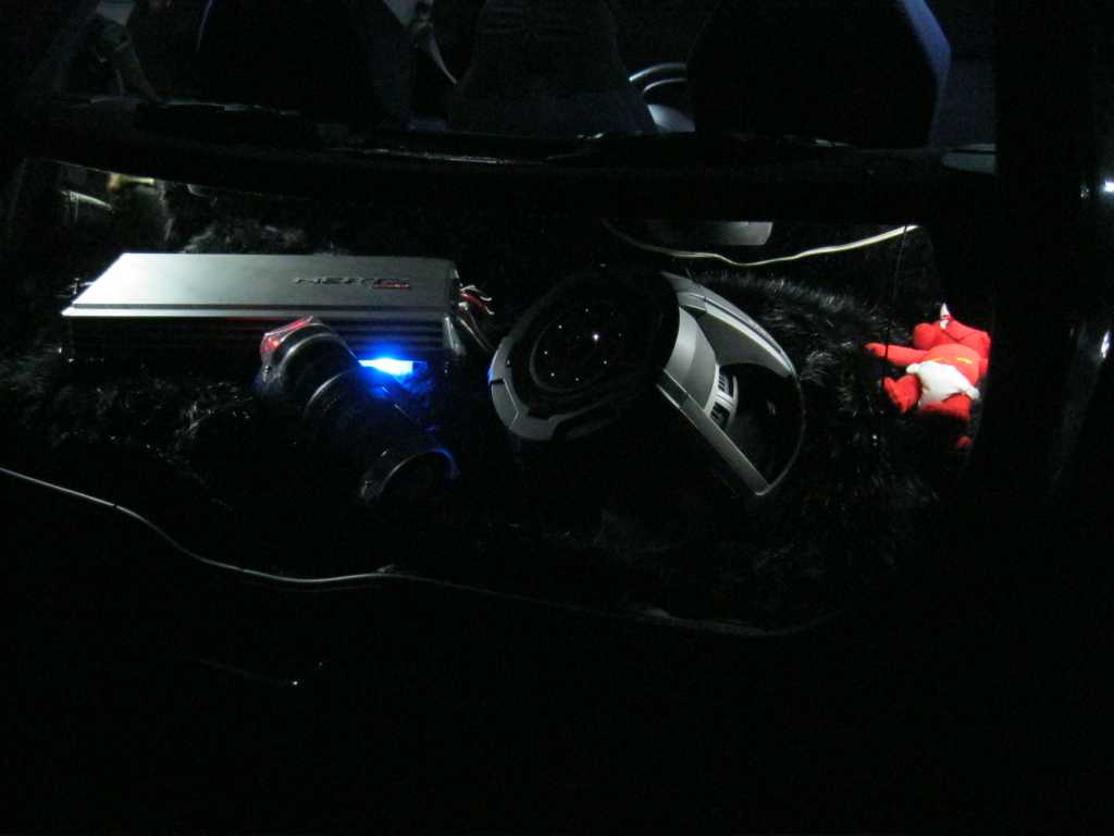 Tutaj z kolei widać jak mało miejsca jest pod głośnikiem w półce dlatego takie ważne było odpowiednie ułożenie kręgu w skrzyni a i tak głośniki są podniesione na półce o jakieś 3cm: Załącznik: