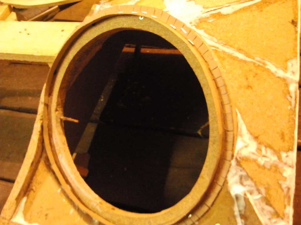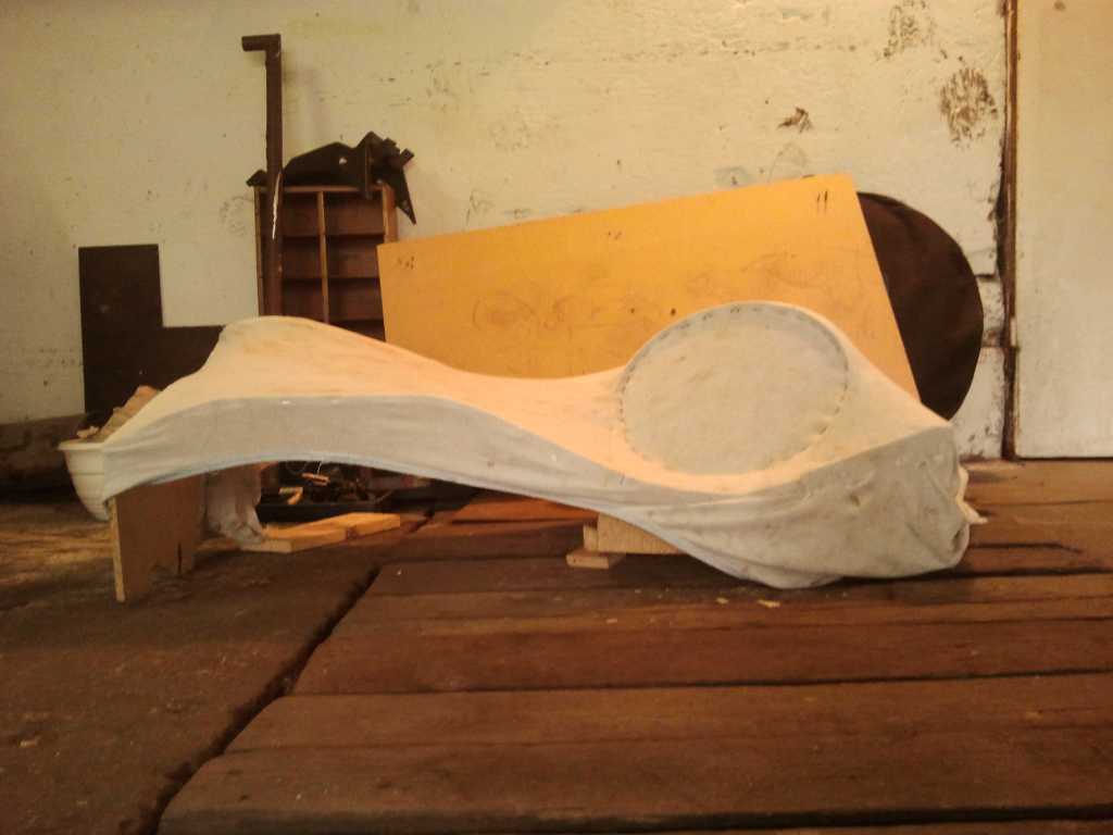 Jak już ładnie uformujemy materiał to mieszamy żywice z utwardzaczem i nasączamy cały materiał zabudowy i czekamy 20min aż ztwardzie, po tym odcinamy nadmiar materiału, zostawiamy tylko z przodu bo będzie nam jeszcze potrzebne  Załącznik: