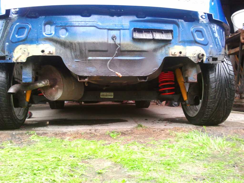 Niestety nie mam innego foto z tłumikiem:P tutaj jest jeszcze stary tłumik  a te druty/ haki są za tym pionowym wzmocnieniem do którego przykręcony jest zderzak i niestety ich tu nie widać  zajrzysz pod auto to zaraz będziesz wiedział o co chodzi. Ważne jest to by tłumik końcowy swobodnie wisiał na gumie a nie na sztywno.