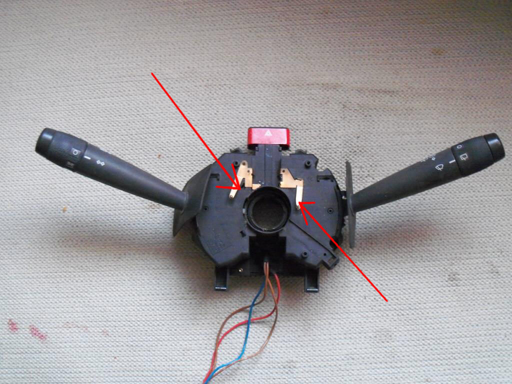 kszyhuu napisał(a): poczytałem ze pod kierownicą sąjakies "styki" ktore mogą nie przewodzic prądu,a ja mam je przeczyscic wygiac czy wymienic ? wersja bez poduszki powietrznej trzeba ściągnąć kierownicę, na przełączniku zespolonym jest plastikowe kółko z bieżniami, po których ślizgają się dwie metalowe blaszki wystające z przełącznika; gdy te blaszki nie stykają się z bieżniami nie ma sygnału - na początek trzeba zewrzeć ze sobą owe dwie blaszki i sprawdzić czy będzie sygnał