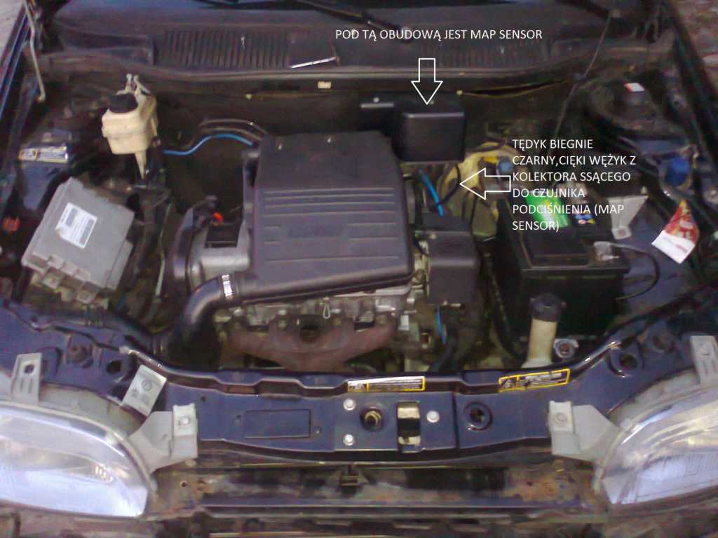 kurde,zapomniałem  jeżeli jest tak samo jak u mnie to sprawdź wężyk podciśnienia w kolektorze ssącym(mógł gdzieś pęknąć) i na odpalonym spróbuj odłączyć Sensor MAP(jest pod taką czarną obudową centralnie umieszczoną w podszybiu), zobacz czy jest jakaś różnica [ Dodano: 07 Cze 2012 10:26 ]co do resetu to nie wiem, a co do sondy to w Twoim przypadku może być gigantyczne spalanie(w 1.1-1.2 silnikach sięga około 10l na 100m) [ Dodano: 07 Cze 2012 10:28 ]ja miałem problemy z wkręcaniem na obroty przed urwany wężyk w filtrze węglowym(oparów z baku), u Ciebie musi być coś innego posprawdzaj to co Ci napisałem i wrzuć dokładne foty motoru