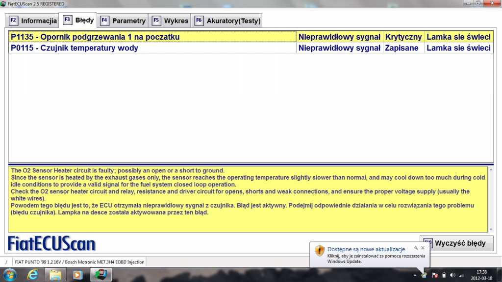 06 Cze 2012, 09:21; Temat postu: P1135 - Opornik podgrzewania 1 na początku - sonda lambda??? |
