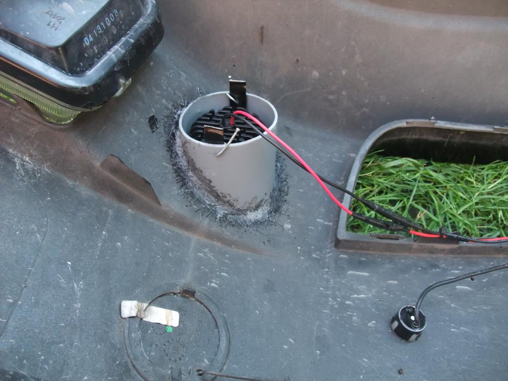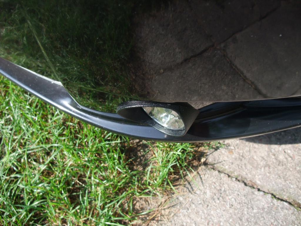 Witam wszystkich. Tak oto wyglądają okrągłe światła do jazdy dziennej DRL, które wykonałem wiercąc otwory zaraz obok halogenów. Efekt mojej pracy a także sposób ich wykonania widoczny na zdjęciach poniżej. Światła zamontowałem w rurach PCV o średnicy 75mm, oklejonych czarną folią i wtopionych następnie do wywierconych otworów w zderzaku. Światła przed zamontowaniem dopasowałem oklejając je dwukrotnie na obrzeżach czarną taśmą tak, by dość ciasno wsuwały się do rur PCV a ich położenie ustaliłem za pomocą dwóch dość miękkich drutów z nitów zrywalnych, który jak widać przechodzi przez rurę PCV oraz blaszkę mocującą światła. Może nie wygląda to z wewnątrz najpiękniej, ale spełnia swoje zadanie a także co według mnie najważniejsze daje łatwą możliwość wymiany świateł DRL, chyba nawet bez demontażu zderzaka, poprzez otwór po wyciągnięciu dolnej kratki. Przyznam, że nie sądziłem, iż jasność świecenia tych czterech diód w światłach DRL jakie zamontowałem, zaskoczy mnie aż tak pozytywnie, gdyż mają one przecież tylko 2 x 4W, czyli 8W w sumie. Dodam jeszcze, że są to światła bez automatu w lampach (podobno są to zawodne elementy, gdyż są wrażliwe na wilgoć), lecz na zwykłym przekaźniku rozwiernym, który wyłącza światła po włączeniu świateł pozycyjnych. Dołożyłem jeszcze jeden przekaźnik zwierny, który załącza światła dopiero po uruchomieniu silnika, a nie po włączeniu zapłonu. Zatem światła działają jak najbardziej zgodnie z obowiązującymi przepisami - załączają się po uruchomieniu silnika i gasną po włączeniu świateł pozycyjnych. Cały obwód zabezpieczyłem bezpiecznikiem, poprzez który plus z akumulatora podany jest na rozwarte styki pierwszego przekaźnika, następnie zwarte styki drugiego a potem światła. Pierwszy przekaźnik załączany jest plusem z alternatora (styki D+), który pojawia się po uruchomieniu silnika, a drugi przekaźnik, jak wspomniałem załączany jest plusem po włączeniu świateł pozycyjnych. Plus a także minus wziąłem bezpośrednio z akumulatora, tak było mi najwygodniej, przewodami zakończonymi konektorami z otworami i przykręconymi do zacisków istniejącymi tam śrubami. Przekaźniki umiejscowiłem w komorze silnikowej, zaraz nad skrzynką z bezpiecznikami. Plus ze świateł pozycyjnych wziąłem z wiązki od lewej lampy - przewód żółty z czerwonym paskiem, natomiast plus z alternatora wziąłem z wiązki biegnącej od alternatora do komputera, a dokładnie z miejsca na samym silniku u góry z jego lewej strony - przewód szary z czarnym paskiem. Zdjęcie przekaźników i podłączenie przewodów dodam niebawem - musiałem na razie pożyczyć swój aparat.