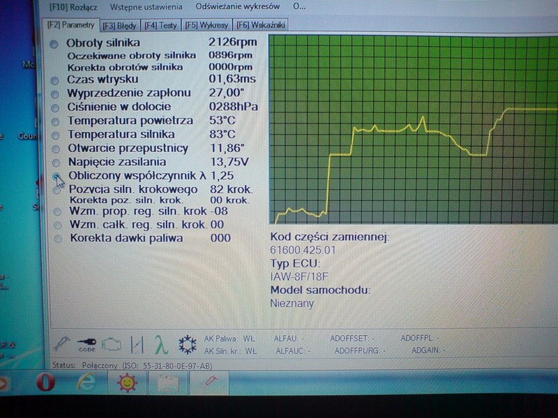 Uruchamiamy program na kompie, ignorujemy błąd jeśli sie pokaże i wybieramy port COM, na którym zainstalowaliśmy kabel - wszystko w instrukcji do VAG KKL, resztę zostawiamy jak jest. Wciskamy F10 lub Połącz, przekręcamy zapłon i już wszystko nam ładnie czyta  Garść screenów: