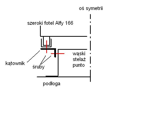 ZakowPany napisał(a): One są od alfy? Jeśli tak to od której? I jaką kanapę posiadasz  ? Od Alfy 166. Rozstaw szyn jest o jakieś 10cm większy ale to nawet ułatwiło sprawę  Kanapa jest stara  raczej od 166 nie wejdzie bo jest duuuużo szersza  ale przymierze po pracy. Może coś wymodzę Schemacik modernizacji jaką musiałem wykonać załączam. Idąc tym tropem można przełożyć każde fotele. A to za sprawą tego stelaża. Tak naprawdę to odkręca się cały fotel z prowadnicami od takiego małego prostego stelaża. I do niego montujemy dowolne fotele. Można pospawać, poskręcać jak kto chce. Jak dla mnie (czy kogoś kto nie ma dwóch lewych rąk) to prosta sprawa. Mi cała akcja zajęła ~3h.