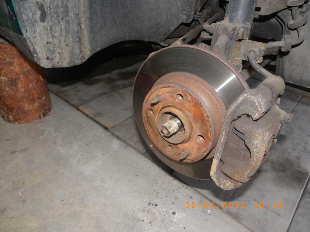 4) Odkręcić śruby sworznia wahacza i wybić go – żeby nie sprężynowało podstawić podnośnik pod tarczę hamulcową i podnieść ją. Załącznik: