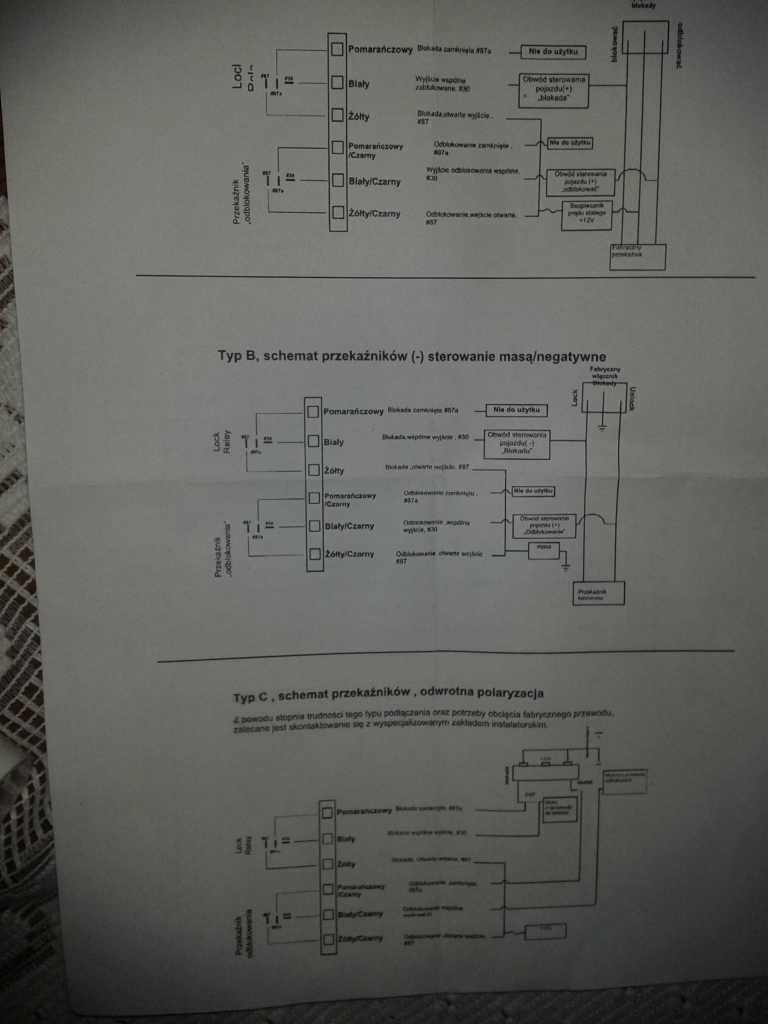 Witam zakupiłem steropwnik do radiowego sterowania centralnym zamkiem i mam kilka pytan gdyz nie moge do konca zrozumiec zalaczonych do sterownika schematow. Po pierwsze chcial bym wiedziec jak skonfigurowac centralke radiową na sterowanie impulsem masy. po drugie chcial bym wiedziec z ktorego z tych schematow musze skorzystac przy montazu sterownika do Fiata Punto II (schematy na zdjeciach). I ostatnie pytanie to czy musze uzyc wszystkich kabli z tych pierwszych ponumerowanych od 1-6 (do blokady drzwi). Pozdrawiam i dziekuje za pomoc.