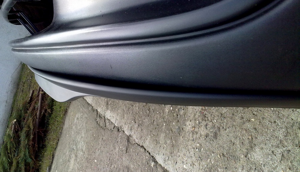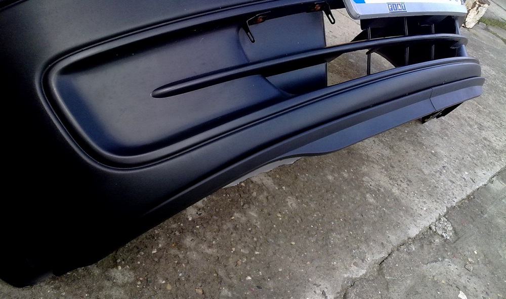 Spojler składa się z 2 części, ma nieco inny profil na "kantach" niż zderzak, ale to wg. mnie nawet plus, poza tym ważne aby środki przykręcić równo, jak już tam przykręcimy na stałe, to bokami mozna manewrować, lekko przygiąć lub nie