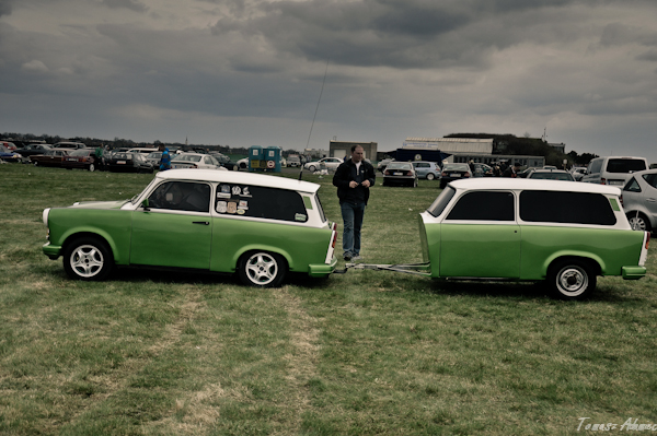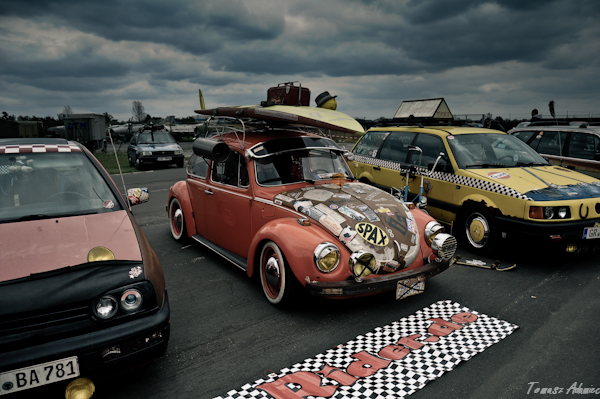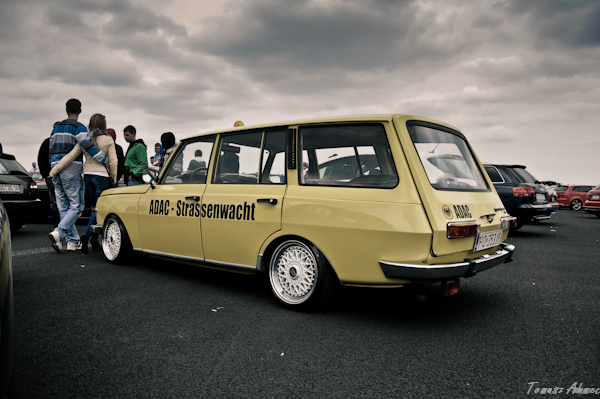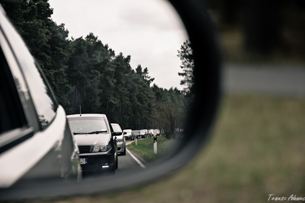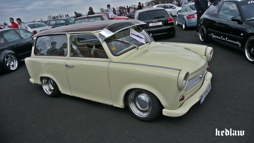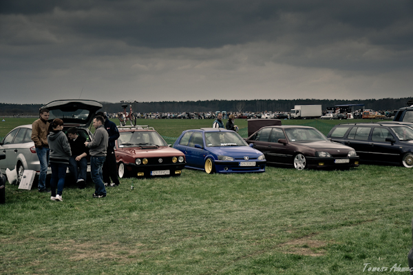 Dobra zaczynając od poczatku na wczorajsze pisanie zabrakło mi sił  793km dały trochę w kość "Rybnik" w składzie SOMEONE007 plus druga połówka, adasiek6510 plus druga połówka i iPak który dołączył do nich z Erni'm na pokładzie zbierali sie w okolicach 3 i wyjeżdżali atakując pierw bielany wrocławskie w celu oczekiwania na zebranie większej grupy (Rybnik poprawcie jak coś pomieszałem  ). Ja z Kedlaw'em byliśmy umówieni później o godzinie 5:40 na MOP "Wirek". Zaliczyłem lekkie spóźnienie ale zostało mi wybaczone  Z MOP'a ruszyliśmy w stronę zachodniej granicy A4  po drodze pogoda nie sprzyjała często padało było mglisto miejscami no i dużo wody na drodze. Jakoś dawaliśmy radę cisnać w okolicach 100-120km/h  Co pewien czas kontaktował się ze mną SOMEONE007 w celu weryfikacji jak daleko już jesteśmy  W okolicach 7 "Rybnik" ruszył z Bielan w dalszą podróż a my byliśmy niecałą godzinę do tyłu. W końcu po postojach i różnych przypadkach ( iPak złapał gumę  ) trafiliśmy się w Zgorzelcu na stacji benzynowej  W dużej grupie padła decyzja by podjechać do Zgorzelca na myjkę i wyczyścić samochody  i tak parenaście samochodów (coś koło 15 chyba) zabralismy się za mycie. Trochę z tym zeszło ale w miedzy czasie zza chmur wyszło słoneczko i humory dopisywały coraz bardziej  Ruszając z myjki troche sie grupa rozzsypała i wszyscy poszli a ja z Kedlaw'em i paroma innymisamochodami zostalismy z tyłu. Po przekorczeniu granicy zjechalismy z autostrady i juz bocznymi bokami jechalismy na lotnisko. Ku mojemu zaskoczeniu okazałem się prowadzącym całą grupę bo "Rybnik" znalazł się za nami  Na 1,5 km przed samym lotniskiem zastaliśmy sznur samochodów czekających na wjazd. Co ciekawe bardzo sprawnie szło w porównaniu do Summer Cars Party no ale to w końcu Niemcy  W oczekiwaniu na wjazd stalismy na płycie lotniska i wzajmenie podziwialiśmy różne samochody. Przeważały samochody grupy VAG parę fordów, oplów i róznych innych sprzętów  Włoszczyzny bardzo malutko było tak więc byliśmy jak rodzyneczki  Po opłaceniu wstępu udalismy się w miejsce wcześniej ustalone i rozbiliśmy obozowisko  Ruszyliśmy w teren w wiadomym celu  Samochodów bardzo dużo, atrakcji praktycznie brak jedynie 1/4 mili no ale na frykasy nie liczyliśmy hehe  Na te wszystkie samochody mi do gustu przypadło parenaście, które chętnie bym przygarnął do garażu  Szczególnie z lat 80 i starsze  pozwiedzalismy, odstalismy w kolejce do WC TOI TOI  parę fotek się porobiło i wróciliśmy coś niecoś rzucić na ruszt  najedzeni posiedzieliśmy, pogadalismy no i zapadła decyzja by po 16 zbierać się do domu. Z racji pogoda godzina była taka nie inna bo co prawda nie padało i nawet jakieś słońce było lecz zimny wiatr skutecznie odstraszał... no i element otoczenia skosumował za dużą ilosć browarów, które wpływały na niebezpieczne zachowania innych uczestników. Do wyjazdu znowu odstalismy swoje ale później nawet to ruszyło i wracajac ztrzymalismy sie na szybkie WC  Po oddaniu honorowo swych płynów na niemiecką ziemię ruszyliśmy do domu. Pierw trzymalismy tempo dziadkowe  80-90km/h lecz po jakimś czasie padła propozycja by skoczyć na 120. iPak z adasiek6510 poszli swoim tempem a ja z Kedlaw'em swoim. Później tez rzuciliśmy sobie okolice 100 i spotkalismy się znowu we Wrocławiu na stacji. Tam Kedlaw dolał paliwa i ruszylismy dalej  Za Wrocławskimi bramkami skorzystalismy z WC w McDonald i co nieco zjedli by później ruszyc dalej. Później było już tylko 110 i tak aż do domu. W między czasie adasiek6510 dzwonił czy mają czekac na nas na Anabergu ale róznica ponad 40km przesądziła, że pojechali dalej. I tak przekroczylismy bramki na Sośnicy dojechaliśmy do Chorzowa ja odbiłem do domu a Kedlaw pojechał odwieść swoich pasażerów. Do domu dojechałem do wskazówka z paliwa znajdowałą sie na czerwonym polu a zasięg samochodu wskazywał tylko kreski Jeśli coś pominąłem to przepraszam. No i reszt moich fotek