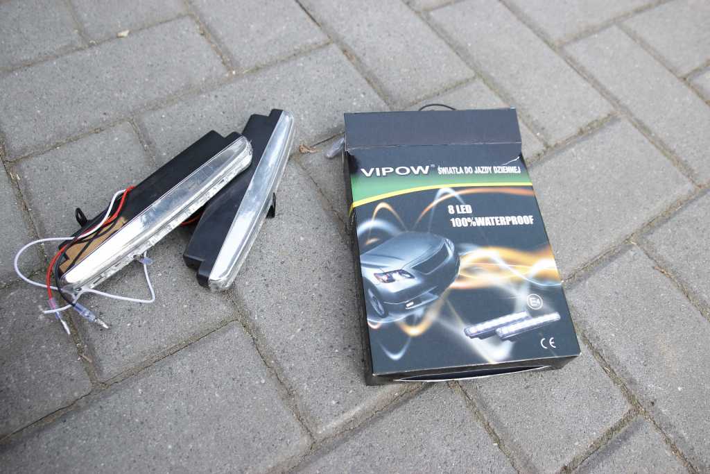 Witam wszystkich!  Zacznę od tego, że wiele czytałem na forum, na temat za i przeciw używania świateł do jazdy dziennej. Strasznie mnie denerwowało to, że na polu jest dużo słońca, a te biedne lampy muszą się grzać i oddawać tyle nie wykorzystanej mocy. Pewno powiecie - bezpieczeństwo i widoczność auta. Kiedyś w ogóle się nie jeździło na światłach. Jak widać auto z przodu jest dość mocno widoczne, gorzej z tyłu... Lepiej widać kierunkowskazy, odbłyśniki nie wypalają się tak bardzo. Podobno jest nawet mniejsze spalanie do ok. 0,2 l/100. Akumulator nie jest tak żyłowany na krótkich odcinkach jazdy. Dla środowiska dobre. Do roboty! Udałem się do elektronika i kupiłem lampy VIPOW ok 49 zł. Są to lampy z automatyczną logiką włączania. Mają trzeci przewód, który podłączamy do światła mijania. W ten sposób lampy dzienne gasną automatycznie, przy włączeniu świateł mijania. Nie trzeba żadnych dodatkowych przekaźników. Oczywiście światła posiadają pełną homologację. Na kloszu jest napisane: DRL, E4, 0087 i RL00. Załącznik: