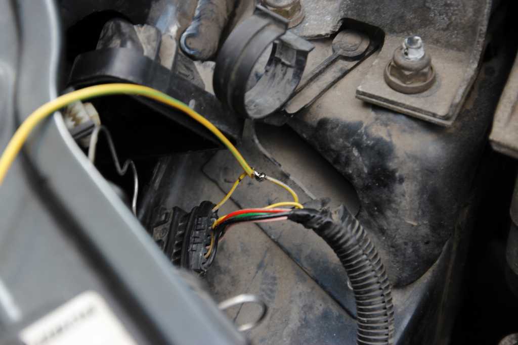 Instalacja elektryczna. Jako, że owe lampy posiadają logiczny automat włączania i wyłączania się przy światłach mijania, sprawa była uproszczona. Trzeci przewód, należało doprowadzić do przewodu (+) od lampy światła mijania (szaro żółty przewód). O tym będzie dalej. Na razie podłączenie zasilania. Załącznik: