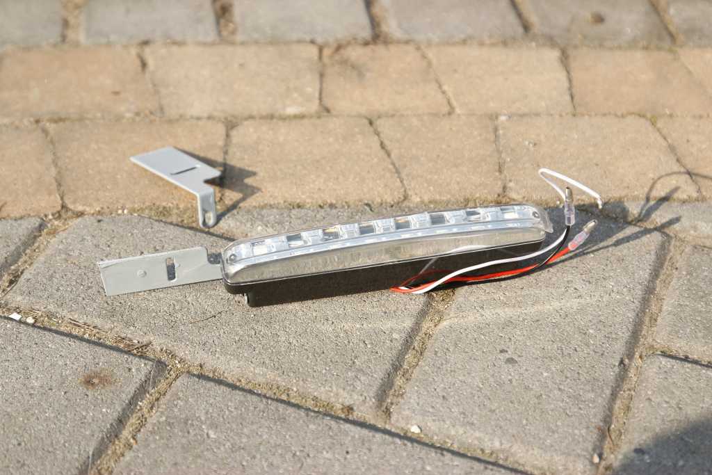 Instalacja gotowa, dziury gotowe, teraz montaż lampek. Tu był duży problem. Wielu rzeczy nie przemyślałem do końca ale jakoś się udało.  Trzeba tutaj wiele cierpliwości by dobrze przymocować. Pewno wielu z was by wymyśliło inny sposób montowania. Tak się zapędziłem, że wiele możliwości nie miałem. Oryginalnie jedna lampka miała się trzymać na żelaznym uchu, które w prosty sposób można było po prostu przykręcić do zderzaka. Wadą tego typu rozwiązania były za bardzo wystające lampki i dramatyczny, amatorski wygląd. Chciałem zrobić wszystko by wpuścić lampki w zderzak i wyglądały niczym listy ledowe pod reflektorami. Przerobiłem fabryczne mocowania, dostarczone w zestawie. Przeciąłem na pół i wykorzystałem do zamontowania: Załącznik: