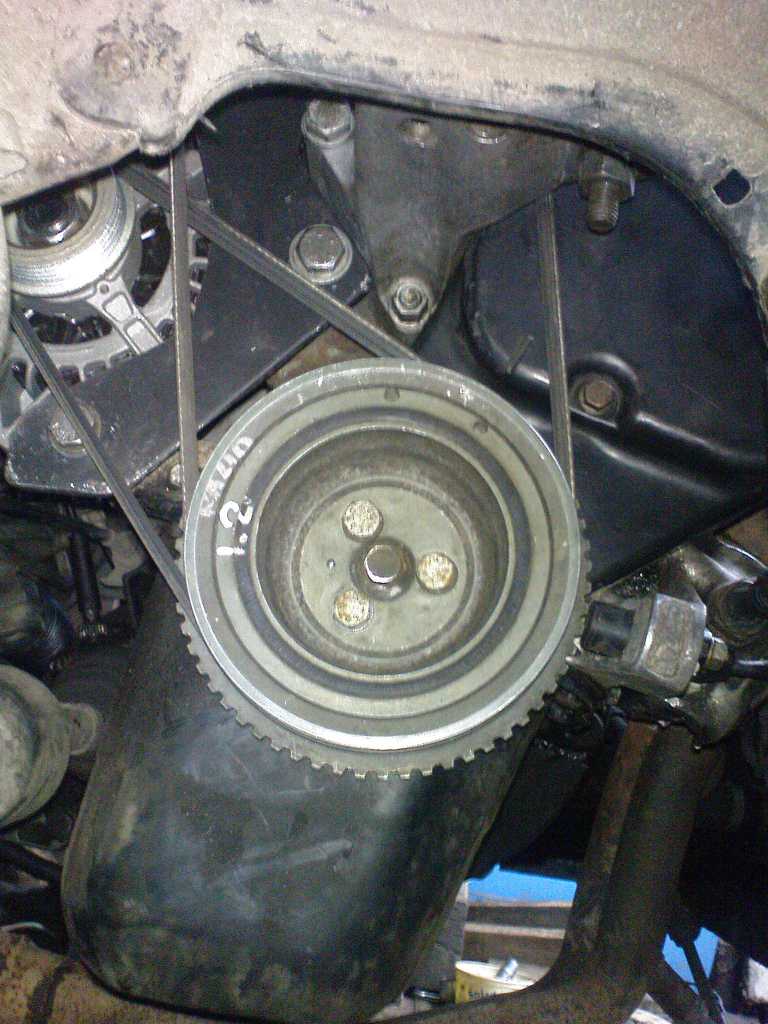 Jak czujnik gotowy zakładamy koło pasowe silnika do wspomagania napinamy pasek alternatora i zakładamy koło na pompę ale obracamy to koło zakładamy pasek patrzymy czy jest równo i nie ociera o przewody lub o łapę silnika.