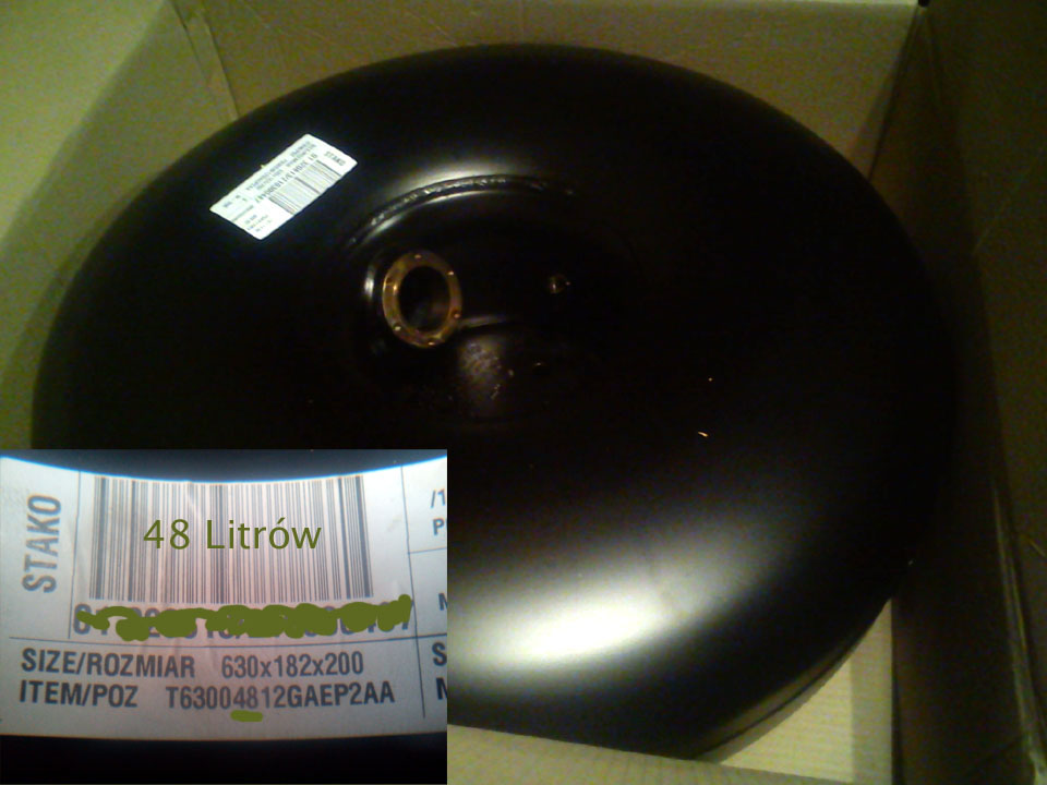 2. W moim przypadku nie produkują już identycznych zbiorników ("Stako"). Zaszła drobna zmiana. Zamiast wysokości 204 jest teraz 200, plus cieńsza ścianka (stąd mniejszy zbiornik ma większą pojemność 48 zamiast 47 litrów).