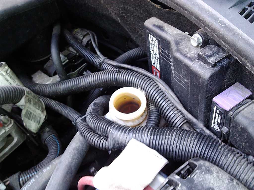 10. Teraz odwiązujemy zacisk, który wisiał nam na drucie. Opuszczamy go i manewrując na boki dopasowujemy tak, żeby zamknął się i otwory na śrubę pasowały do siebie. 11. Zakręcamy z czuciem śrubę. Ja użyłem starej śruby, była w całkiem dobrym stanie, nie przerdzewiała. 12. Zakręcamy koło i kołpak, opuszczamy samochód z podnośnika, zakręcamy pokrywkę zbiornika płynu hamulcowego. U mnie dość znacznie podniósł się jego stan po wciśnięciu tłoczków. Prawie się przelał. Załącznik:
