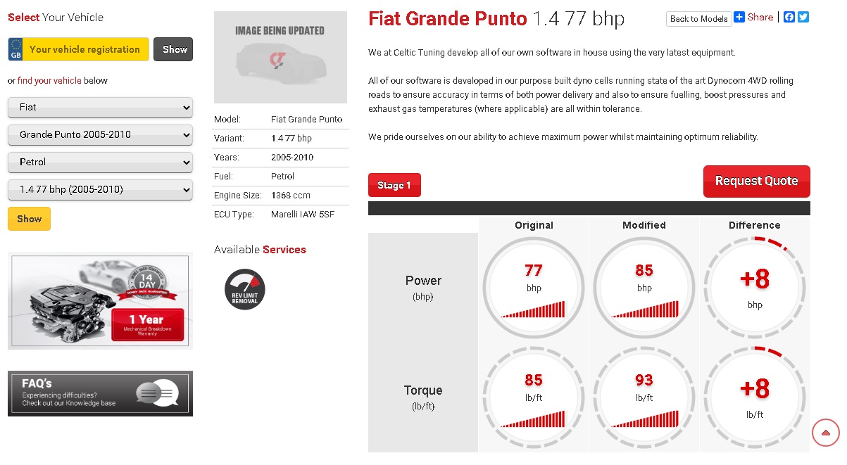 W wolnossakach podniesienie mocy jest możliwe, ale tylko o kilka kucy (do 10 powiedzmy), więc sensu to nie ma raczej (a jeszcze się w normach spalin zmieść, aby to przeglądy przechodziło + kwestia trwałości). Losowy przykład, firma w UK, mapa ECU: w 1,4 8V wzrost +8 koni i 10 Nm jak dobrze przeliczam. W 1,2 8V +6 kucyków. https://www.celtictuning.co.uk/services/performance-stats/fiat/grande-punto-2005-2010/petrol/1-4-77-bhp-2005-2010-ECU-remap-chiptuning/stage-1#t3-contentZałącznik:
