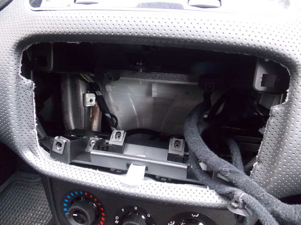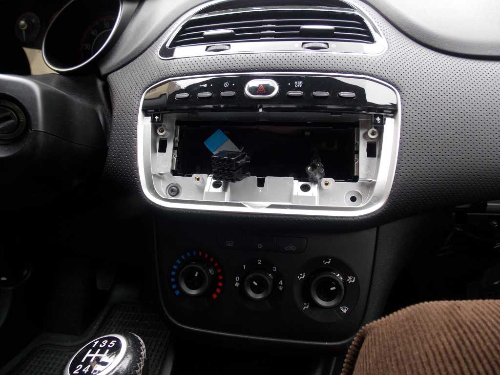 Pod fabrycznym radiem w evo trzeba odkręcić 6 śrub (4 mocujące panel ze sterowaniem nawiewu do obudowy i u mnie były jaszcze dwie mocowanie kieszeni radia), 2 śrubki od dołu pod zaślepką jak w grande, teraz są jeszcze dwa zatrzaski od góry(wystarczy mocniej pchnąć raz z prawej potem z lewej). Teraz wepchnąłem cały panel do środka a następnie odwróciłem do góry i prawo, teraz można wyciągnąć kostkę z żarówką z jednej strony, to samo z drugiej strony. Do wyciągnięcia radia fabrycznego wystarczą cztery szprychy albo gwoździe o grubości otworów w panelu radia, zatrzaski są około 2-3 cm pod panelem.