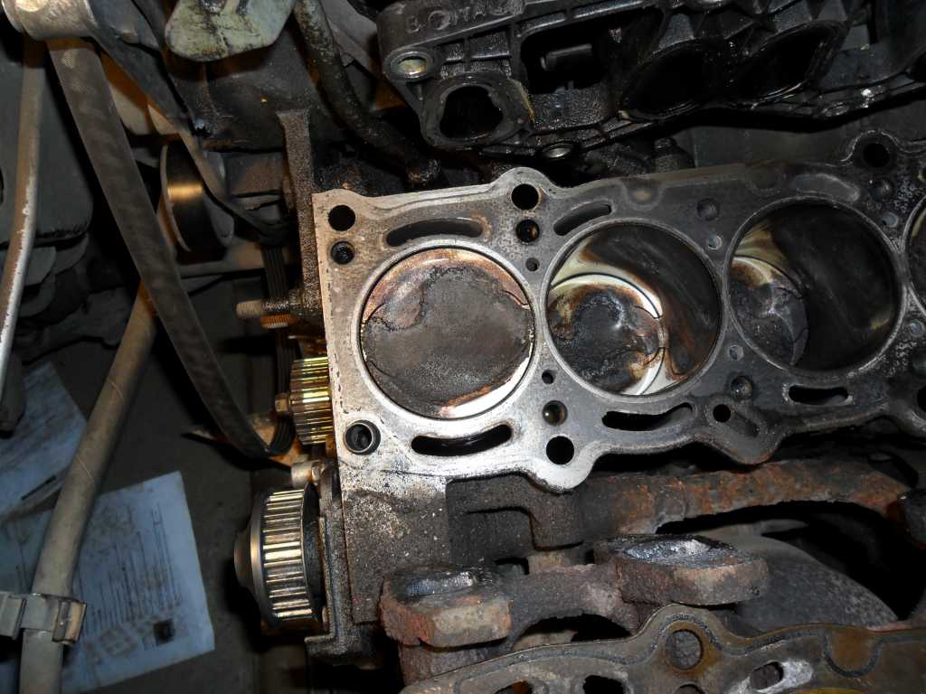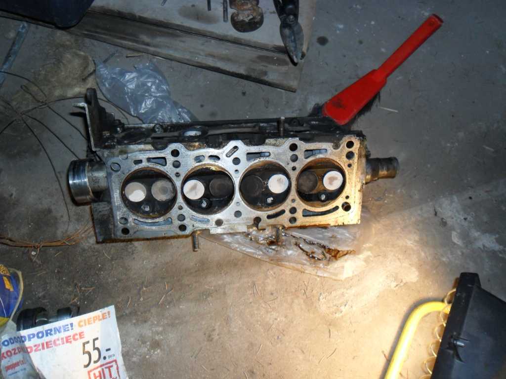 1. Samochód najpierw zaczął tracić moc i zaczęły klekotać zawory wiatrak włączał się często ale wiadomo upały itd. 2. Woda w chłodnicy czarna (myślę bo dawno nie zmieniana) - płukanie wymiana - wcześniej zauważyłem ,że ubywa płynu ale minimalnie. 3. Może iskra - Wymiana kabli ,świec ,check cewek - brak poprawy 4. Diagnoza przestawiony rozrząd - wymiana(był walnięty 1 ząbek) przy okazji dwa dziurawe węże od chłodnicy (stąd ubytek pomyślałem). 5.Woda znów delikatnie czarna (może słabo wypłukałem). 6.Moc nie powróciła ale zawory nie klepią - dalej się grzeje. 7.Woda znika z chłodnicy w tempie ekspresowym - diagnoza UPG koniec jazdy(woda wpada do cylindra myślę). 8.Zdjąłem głowicę zawory dolotowe białe to samo świece jakiś twardy szlam na tłokach. Nie znam się na uszczelce (pierwszy raz ją robię i widzę na oczy) i nie wiem czy jest uszkodzona czy była dobra i pęknięta jest głowica.