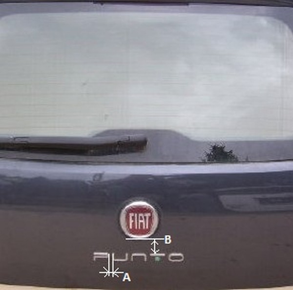 A = 7,45mm B = 37,15mm Znaczek "FIAT" jest umieszczony w środku wytłoczenia na klapie ( służy również jako przycisk otwierania klapy)
