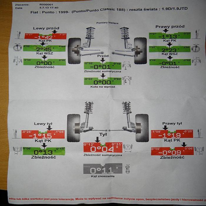 Mówili, że mnie powinno ściągać i ciąć oponę. Niby mnie nie ściąga, ani nie tnie opony. Pytanie czy takie wartości są aż tak przekroczone, że trzeba to robić? Chodzi o tą przednią oś.