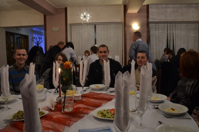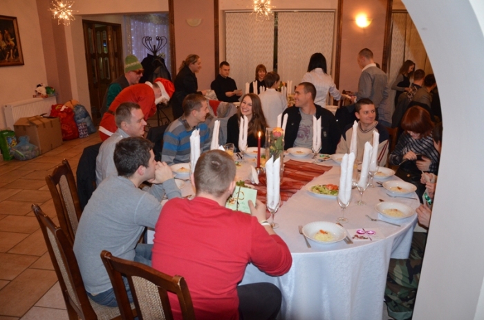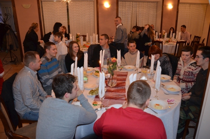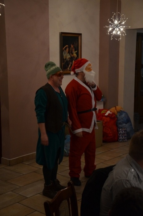 I wtem nastał dzień wybrany przez wielu i nastała godzina wspomniana w przepowiedni danej przed dniami wielu. Zabrawszy uprzednio współpasażerki do pojazdu swego udali się oni na miejsce wybrane, gdzie z połaci ziemi zalanej betonem ku niebu strzeliście wyrasta baner rozłożysty. A miejsce to powszechnie parkingiem jest zwane przed miejscem, gdzie kupcy swój towar gawiedzi oferują. Nie długą drogę przebyła wskazówka po zegara cyferblacie, gdy na horyzoncie pojawił się kształt im dobrze znany. Niejako to Marcin z owego rydwanu wysiadał, lecz tym razem to już nie Marcin a młodzieniec graczykiem zwany zajechał na miejsce przez wielu wybrane. Po zamienieniu uprzejmości wielu o drogę zapytaniu i licznych historyi opowiedzeniu złowroga sylwetka pojazdu w otchłani kolorze na srebrzystym felunku im się pojawiła. To Marcin, kompan naszych spotkań minionych swym nowym nabytkiem pochwalić się raczył. Nie zdążył no silnik się schłodzić za mocno gdy huk dobiegł ich uszu. Niczym pantera w biegu swym szaleńczym za ofiarą na dzikim matki natury łonie zmierzał ku ich postaciom bolid nietuzinkowy. Dwoje drzwi tylko posiadał a sylwetka jego zdradzała moc niebagatelną pod maską wielką jak połacie tych łąk zielonych, pagórków leśnych, szeroko nad błękitnym Niemnem rozciągnionych skrywaną. To kolejny gość z dalekich stron regionu naszego rozłożystego Adamovem zwany. Zapędziwszy się i na spotkanie ku nam lecąc zgubił no biedaka co w podróży raczył mu towarzyszyć a do zawitania w gronie naszym nielicznym uprzednio namówiwszy. Wysiadłwszy no z mobilu swego i w pośpiechu tłumacząc, iż za skarby świata i na miłość panienki najświętszej zaklinając się pojęcia nie ma co z drugim ziomkiem się stało. Wtem dobiegł ich uszu krzyk zza pleców obwieszczający pojawienie się na horyzoncie zguby o którą martwić się poczęli. To Massa poganiając swego wiernego acz mogącego sprawiać, iż zmęczonego już nieco życiem mechanicznego kompana podróży wpadł na dukt prowadzący ku wielu. Powitali i jego serdecznie bardzo. Tak jak w przepowiedni dane było tak i w rzeczywistości stać się miało. Nieopodal nich przyczaił się rydwan nieznany. Gołem okiem widoczny iż w zachodniej, krzyżackiej kuźni klepany. Na co dzień od stroju poniekąd Golfem zwany. Woźnica jednakże zachwyciwszy się na widok jakże wspaniały włoskiej motoryzacyji, zawstydzon tem co posiada nie podszedł do zebranych nieopodal wielu. Gdy wybijać miała godzina ustalona, tłum w niepokój nieco zdał się wpadać. Brakło jednego pojazdu na miejscu ustalonym. Jednak i On nie kazał długo czekać na osobę swoją wraz z towarzyszką życia pojawiwszy się wśród nich. Uprzednio nonszalancko zajechawszy okrąg kręcąc poniekąd jak sokół gdy łowów swych dokonuje. Niczym Filip z konopi przed oczyma zabranych wór czerwony nie przymierzając jako lico białogłowy jakiej się spojawił. Podarki dla dziatwy licznej wrzucać weń zaczęli. Dawali co mieli. Wszystko aby uśmiech najmłodszych zaskarbić sobie. Po wymienieniu kolejnych uprzejmości paru do rydwanów swych wsiedli i na miejsce wieczerzania raczyć się udali. Na miejscu już ludu sporo się zebrało. O miejsca na postój niemal jak o życie walczyć im przystało. Sala z daleka światłem i ciepłem swym zapraszała. Udali się więc w jej kierunku za ciepłą strawą stęsknieni. U progu postać znajomą spotkali. Tak im się nader tylko zdawało. Nie widząc pomyłki swej po piątaku jej przybili. Lecz to nie kompan ich był a kukła jaka dmuchana ku radości innym ustawiona, śnieżną postać nieco przypominająca. Zająwszy miejsce u stołu, uprzednio podarki w miejscu wyznaczonem porzuciwszy opłatkiem danym się wspólnie przełamali. Jako iż strawa zbyt obfita nie była to i na rozmowy czasu było pod dostatkiem. Tak więc na tematach o drutu ciągnieniu i o wężach ssących wieczór im upłynął. Po zjedzeniu i wypiciu wszystkiego co dane im było a do trudnych zadań nie należało to, po wykonaniu zdjęć wielu, nie czekawszy na wypalenie świec pozostawionych na stole udali się celem wieczerzania dalszego do czeluści podziemnych ogarkami jasnemi jak gwiazdy na bezchmurnym niebie rozświetlonych. Parkingiem podziemnym przez wielu zwanym. Tam spotkanie tradycyjną formę przybrało, gdzie każdy bez krempacyji wielkiej wsiąść do każdego bolidu mógł. Ba aby tylko. Co hojniejsi i przemierzyć parę metrów innym zezwalać raczyli. Ileż to wystać nogi potrafią. I one zmęczenie prędzej czy później odczuć raczą. Także i tym razem inaczej stać się nie mogło. Zmęczeni trudami wieczoru w moc atrakcji bogatego, poprzeplatanego historyjami przez każdego wypowiedzianemi udali się zebrani do domostw swych na spoczynek. Radzi jednak z poczynań swych i bogaci w nadzieję, iż na uśmiech najmłodszych chociaż najmniejszy zaskarbili sobie.