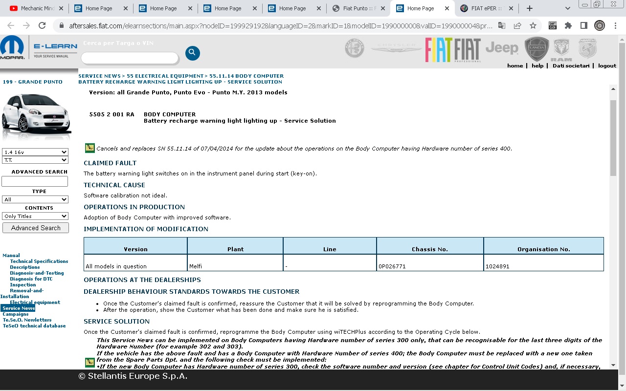 Czyli poprawka programowa jest do Body (i/lub jego wymiana) tym razem (podejrzenia o komunikacji modułów trafione i to, że ECU oraz Body testują różne parametry). Inne akcje serwisowe: https://aftersales.fiat.com/elearnsections/main.aspx?nodeID=199005009&languageID=2&markID=1&modelID=199000000&valID=199000005&prodID=199000000&modelName=Fiat%20-%20199%20-%20Grande%20Punto&langDesc=English§ionName=Campagne&validityName=1.4%2016v%20TJet&isExaminer=Załącznik: