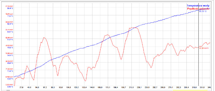 Cytuj: Mam już dobry miernik (poprzedni zaniżał wartości) Spróbuj wymienić baterię w poprzednim mierniku (może być rozładowana i przez to miernik źle wskazuje). Cytuj: Przed odpaleniem - 12,3 V W wolnej chwili znowu bym podłączył akumulator do prostownika na kilka godzin, niech się podładuje (nie zaszkodzi a może uda się akumulator utrzymać na jako takim chodzie) Cytuj: Jeśli to alternator - to skoro trzyma względnie odpowiednie napięcie przy włączonych podstawowych rzeczach to może do następnej zimy (ew. momentu w którym ostro spadnie temperatura, gdzie będę potrzebował mocnego nawiewu itd.) może nie muszę go na razie wymieniać? (był regenerowany 3 lata temu). Najpierw zobacz jak się alternator będzie zachowywał jak się nagrzeje (to że nie trzyma już napięcia na zimnym silniku nie rokuje dobrze). Cytuj: Co w wykresie jest nie tak? Poza tym, nie jest tak, że skoro temperatura doszła do 50 stopni to przewody miały prawo być ciepłe ? Czy źle rozumuje? Za wolno temperatura rośnie, są delikatne dołki których nie powinno być. W załączeniu wykres temperatury cieczy chłodzącej z mojego kropka (z nawiewu nie korzystałem dopóki się nie nagrzał). Popatrz na niego i zwróć uwagę, na to jaka była temperatura po 168 i 336 sekundach na obu wykresach. W samochodzie masz dwa obiegi cieczy chłodzącej: * mały - silnik, nagrzewnica (jak masz lpg to również parownik) * duży - silnik, chłodnica (celem dużego obiegu jest jak najwydajniejsze chłodzenie cieczy) Termostat jest odpowiedzialny za utrzymanie optymalnej temperatury silnika (coś koło 90 stopni). Sprawny termostat jak ciecz osiągnie około 90 stopni to otwiera przepływ cieczy na duży obieg, żeby obniżyć jej temperaturę (jak temperatura spadnie poniżej 90 stopni to zamyka się i tak w kółko). Dopóki temperatura nie osiągnie 90 stopni to nie ma prawa być przepływu cieczy przez duży obieg. Nagrzane przewody i chłodnica przy maksymalnej temperaturze cieczy wynoszącej 50 stopni oznaczają, że taki przepływ wystąpił czyli termostat nie działa prawidłowo.