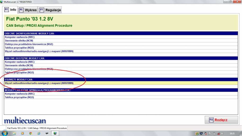 Witam. Pozwolę się podłączyć pod istniejący temat ponieważ od dwóch dni walczę z podłączeniem radyjka i pokazuje mi CANCHECK. We wtyczce mojego Punciaka są tylko styki na złacza Ub i CAN A. A z tego co wyczytałem radyjko sterowane jest poprzez CAN B ?!. No i jeszcze jedna kwestia, podłączyłem FESa i odczytałem taki komunikat jak na zdjęciu poniżej: ...acha no i procedura włączenia radia bez CAN z klawiszami AF-TA oraz BN w moim radiu nie działa ??!!