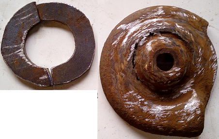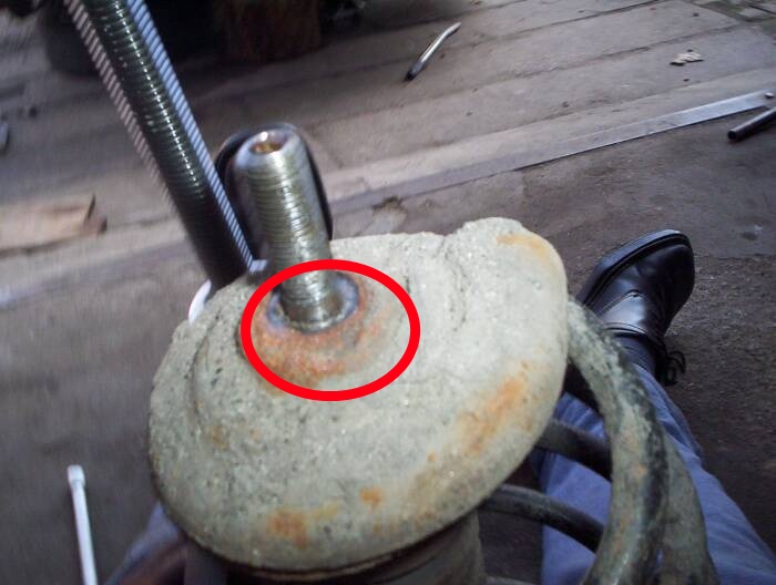 Moje mocowanie sprężyny też przekorodowało. Wydawało się, że trzeba wymienić łozysko / poduszkę, tymczasem łożysko było sprawne. U mnie miska wyglądała tak, jak na foto. Na szybko dorobione wzmocnienie z grubego płaskownika, wspawane. Trzyma się świetnie. Strachu, że pęknie nie ma - jak pęknie to spręzyna i tak nie wypasnie, a do domu zawsze jakoś dojedzie.