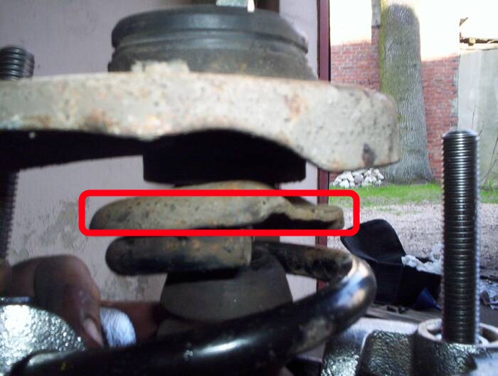 Hej. Rozkręciłem mcpersona w punto I celem wymiany łożyska w poduszce. Łożysko sprawne, natomiast przegniła i opadła ta część zaznaczona na czerwono i zamiast jednej części całej blaszki mam dwie jedna w drugiej czyli taki pierścień zrobił się przegnił i spadł w dół, co powoduje zgrzytanie. Mi to wygląda na blachę - górny kielich na którym opiera się sprężyna jest to pod poduszką amortyzatora w której jest łożysko. Nie chcę tego spawać bo są tam duże obciązenia. Chłopaki,jak się to nazywa i gdzie to kupić, bo na szrocie sprzedają tyljko całe mcpersony? Załącznik: