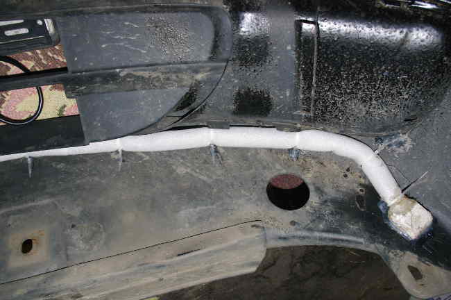 Opaskami zaciskowymi delikatnie łapiemy co 10 cm. Nie obcinamy ogonków, zostaną użyte do przyklejenia naszego rulonu do zderzaka (użycie bezpośrednio kleju na gorąco na folii piankowej spowoduje jej uszkodzenie i utratę właściwości izolacyjnych). Załącznik: