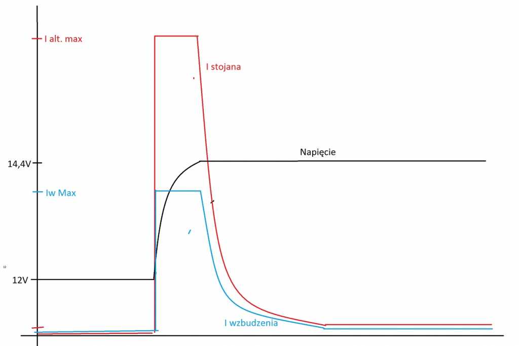 No jeszcze jedno Imax nie zależy od obrotów dopiero powyżej pewnej granicy.... 2-3 tys rpm alt czyli 1000-1500rpm silnika. Przy niższych rpm nie wyciągniesz z alternatora Pmax. Chociaż kto wie co teraz powymyślali... (w końcu mamy drugą dekadę XXI wieku  ) może jakoś optymalizuje przebieg prądu ładowania w nowszych samochodach? Bo to to j/w to jest najprostsze co może być  I tak to w PII działało  Teraz masz jakieś "IAM" -> Intelligent Alternator Module  Żeby np. obniżyć emisję CO2, optymalnie ładować mocno rozładowany aku  itp. itd. Google i inglisz lengłicz dużo tu powie  Zapewne doktorat o tym można napisać