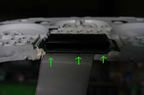 Do zamontowania wyświetlacza w miejsce fabrycznego potrzebna będzie odsysarka cyny, trochę cierpliwości. Najpierw trzeba odlutować gniazdo z tyłu wyświetlacza i przylutować na stałe taśmę. Lokalizujemy przewód na taśmie który trzeba przylutować do pinu 18. Następnie lutujemy po kolei co drugi przewód do płytki wyświetlacza. Przewody w taśmie są dosyć cienkie i delikatne, więc po przylutowaniu zabezpieczamy je dodatkowo taśmą izolacyjną. Załącznik: