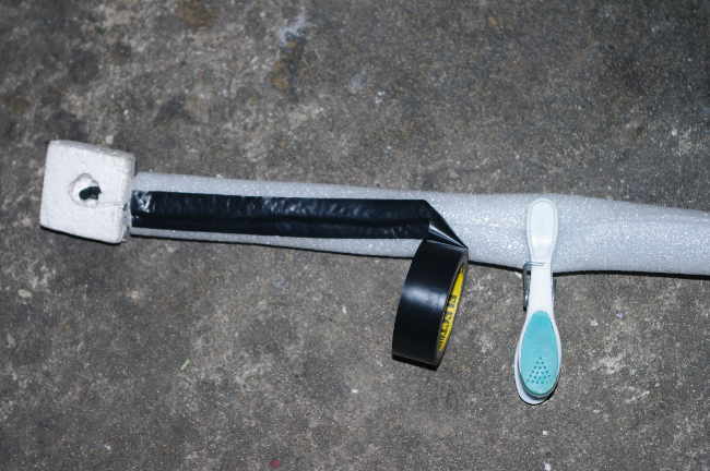 Izolujemy kable używając folii piankowej polietylenowej. W pierwszym kroku owijamy kabel pianką. Przewód kładziemy około 1-2 cm od krawędzi pianki, zaginamy folię i co około 10 cm łapiemy używając klamerek do prania. Załącznik: