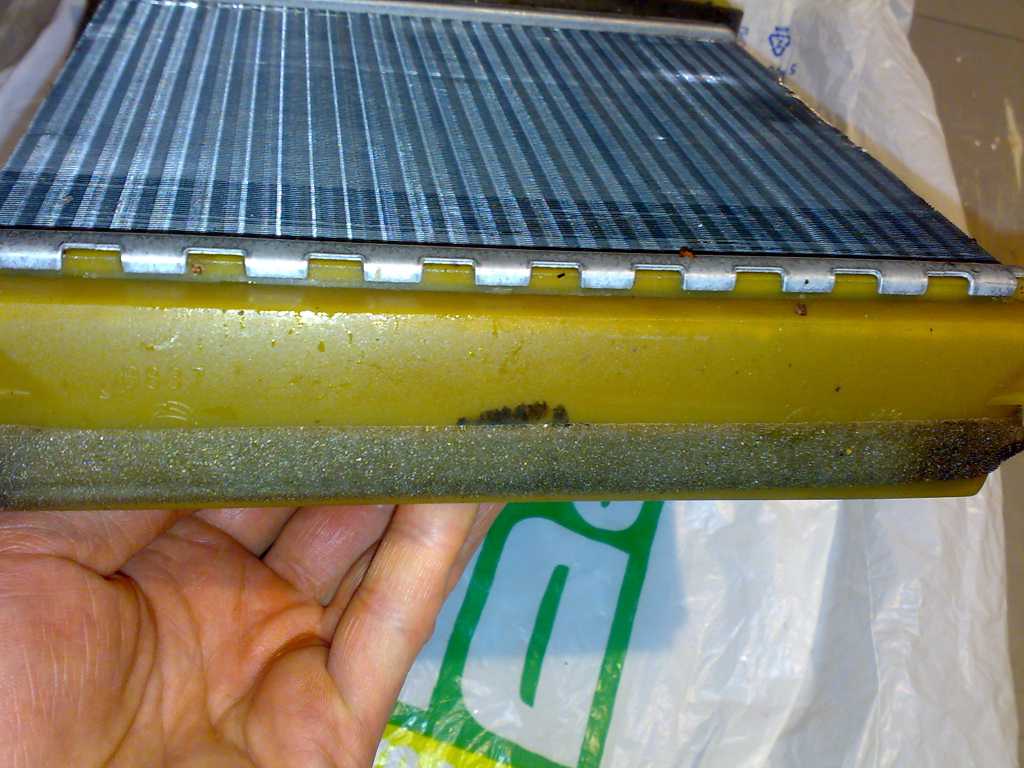 Objawy typowe: parujące szyby i dziwny zapaszek. Rok temu grzało b. dobrze ale na jesień PI po prostu zaprzestał. Samochód stał kilka miesięcy w garażu aż się doczekał demontażu. Nie byłem do końca pewien czy to rzeczywiście nagrzewnica bo i spuszczając płyn chłodniczy był on czyściutki o ładnym zielonkawym kolorze a i żadnych wypływających osado-brudów nie uświadczyłem. Jakież było moje zdziwienie gdy po kilku dniach mordęgi moim czom ukazała się...zdaje się dobra nagrzewnica. Przeglądając fotki w necie moja wygląda jak wyciągnięta z pudełka. Ot parę liści. Modeł MM (naklejka na obudowie). Plastikową obudowę przechyliłem króćcami pod kątem ok 45 stopni. Odkręciłem dwie śrubki i wysunąłem nagrzewnicę. Po tej operacji zerknąłem do środka obudowy. Na "dnie" tejże obudowy znajdował się płyn układu chłodzenia. Pytania: 1. Czy przy demontażu płyn mógł się wydostać? Króćce było skierowane prawie pionowo. Chcę się upewnić czy aby na pewno nagrzewnica była uszkodzona i czy zmarnowałem cenny czas na demontaż tego ustrojstwa zamiast skupić się np na odpowietrznieniu (dziś doczytałem). 2. Można sprawdzić szczelność nagrzewnicy beż jej montowania? 3. Czy możecie polecić materiał żywicopodobny? Przy demontażu elementy mocno przylegały i ich usunięcie spowodowały liczne pęknięcia i dość znaczne ubytki. 4. Czy zalecane jest przepłukanie układu a jeśli tak to czym? I jak wygląda procedura? 5. Jaki płyn polecacie? W bagażniku jest puste opakowanie po Paraflu11-koncentrat do układu chłodzenia (do rozcieńczenia z wodą 50:50). Będę wdzięczny za pomoc.