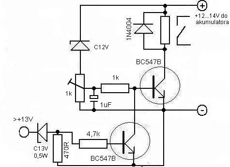 Układ dzięki diodzie zenera wykrywa napięcie z alternatora 13,2v i zał. Diody po wył silnika napięcie spada do 12 i DRL po chwili gasną(podłączenie bezpośrednio do akumulatora) oczywiście po zapaleniu świateł gasną Załącznik: