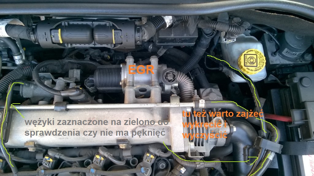 Myslę że poradzisz sobie bez problemu, ja u siebie też czyściłem pierwszy raz zachowawczo, po roku czasu już nie było problemów  a po roku użytkowania nagaru było dość sporo :\ do czyszczenia EGR używałem rozpuszczalnika nitro i pędzelka, płukałem go w środku chyba pół godziny, aż z wnętrza wylewał się czysty rozpuszczalnik. Może być też do tego jakiś preparat do czyszczenia przepustnic. Warto też wykręcić "przepustnicę" i ładnie wszystko wyczyścić. Pod plastikową rurą dolotową znajduje się czujnik temperatury cieczy jeśli byś chciał coś z nim robić. Ewentualna wymiana jest banalnie prosta  Aha jeszcze pytanie jaki stan filtra powietrza oraz kiedy ostatni raz był u Ciebie wymieniany filtr paliwa?