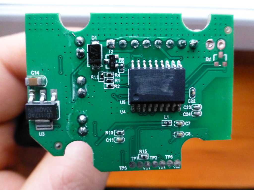 Kilka postów temu po pomyślnym przerobieniu ELMa kablowego, zastanawiałem się czy tak samo pójdzie to z bliźniaczym interfejsem na bluetooth. Mój interfejs wygląda tak:  Jest to bardzo popularny interfejs dostępny na allegro. Niestety na żadnej aukcji nie jest podane ani wersja tego interfejsu ani też czy będzie pracowało z CAN np. w przypadku Fiata. Ten konkretny, który posiadam jest wersji 1.4 naturalnie nie przerobiony i fabrycznie diagnozuje w Fiacie tylko silnik. Wcześniej miałem identyczny, który fabrycznie był przerobiony, ale popsuł mi się i zmuszony byłem podjąć próbę "usprawnienia" nowego.  Łatwo zauważyć, że płytka jest niemalże identyczna jak w interfejsie kablowym tej firmy (tylko od spodu wlutowany jest płaski kształtem moduł bluetooth). Analogicznie do interfejsu kablowego szukałem znanego opornika 120 Ohm który trzeba wylutować i wytypowałem ten zaznaczony na zdjęciu. Bardzo zaskoczyło mnie, że opornik, który był identycznie w tym samym miejscu jak w ELM kablowym i miał identyczne oznaczenie „121” ma tutaj opór nie 120 ale 193 Ohm (??). Początkowo mierząc jeszcze wlutowany opornik myślałem, że może dodatkowy opór bierze się od pobliskiego scalaka, ale wylutowany opornik leżąc na stole też ma 193 Ohm - gdyby nie to że przerabiałem interfejs kablowy to tu nie wiedziałbym co należy wylutować. Ciekawe czy różnica oporu to chińska niedokładność czy tak miało być  Po usunięciu opornika interfejs działa prawidłowo, mogę diagnozować przez MESa i FESa deskę, skrzynię oraz nadwozie i co najważniejsze interfejs nadal działa z Androidem. W moim przypadku w Putno II 1.2 16V zarówno ten kablowy jak i ten interfejs na bluetooth nie diagnozuje ABS i poduszek - program informuje mnie że należy to robić VAG/KKL co faktycznie przy zmianie na VAG jest możliwe.