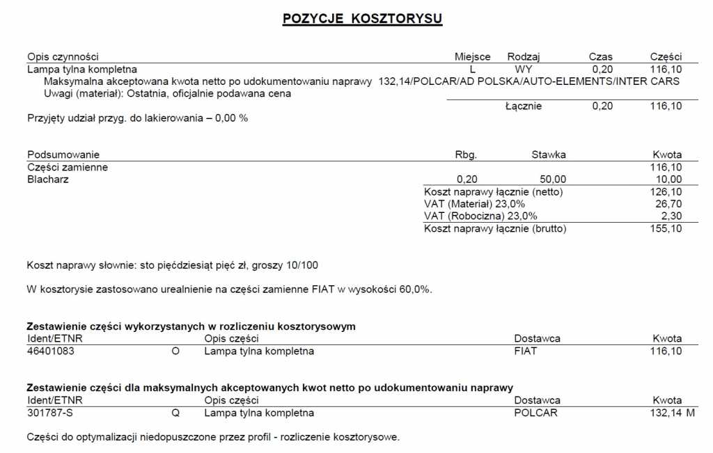 Witam, Chciałbym Was prosić żebyście zerknęli na wycenę napraw wystawioną przez rzeczoznawcę PZU, bo mi osobiście ceny wydają się zaniżone. [ Dodano: 27 Kwi 2015, 09:22 ]Rzecz jasna chodzi o PI 1,1 95r 5D. Problem w tym, że z tego co słyszałem to od tego roku jest tak, że odszkodowanie wypłaca własne TU, a potem bierze regres od sprawcy  Co ciekawsze, ja mam w PZU i jako, że w zeszłym roku (szkoda z 4 kwartału 20014r.) sprawca z innego towarzystwa wyrządził mi szkodę, a PZU reklamowało się nową usługa "załatwimy to za Ciebie" pomyślałem OK. Skończyło się na tym, że chyba mnie wydymali